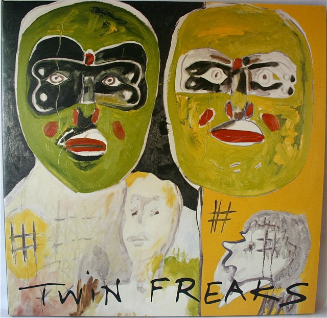 The front and rear covers (above) of “Twin Freaks”. The cover image is a painting actually called “Twin Freaks” which is featured on page 69 of Paul’s book of his artworks entitled “Paintings“.