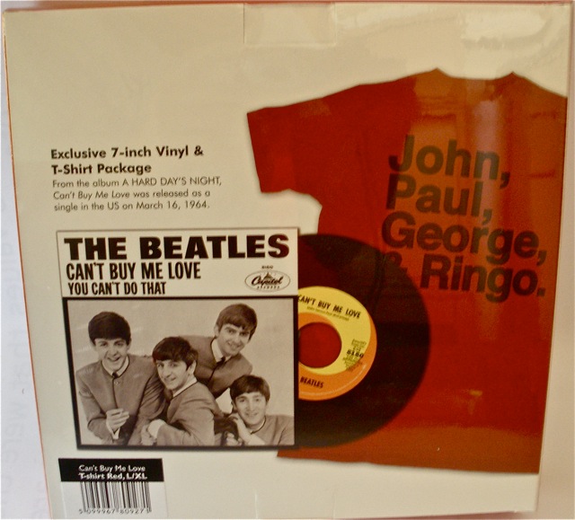 Target stores in the USA recently sold an exclusive and official limited edition of four Beatles 45 rpm singles. Each record was packaged along with a Beatles t-shirt in a box. The four vinyl singles are newly-pressed and digitally remastered using the same mastertapes as the 2009 re-issues. This makes these four singles (along with the Record Store Day “Paperback Writer” single released last year) the only vinyl available so far from the recent Abbey Road Studios remasters of the Beatles back-catalogue.