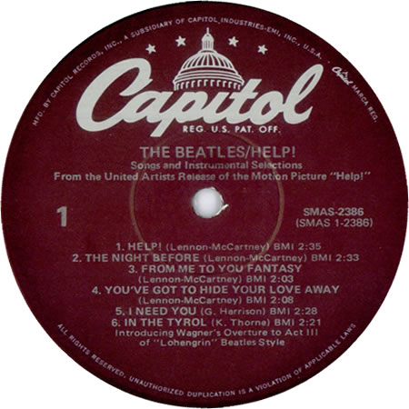 Our last post was about the 1965 US Capitol Records edition of the Bealtes “Help!”