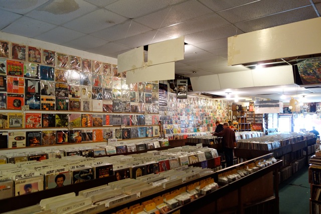 The first I visited was Recycled Records. They had some vintage Beatles LP’s, but to be honest they were fairly expensive….and so I concentrated on the Beatles as solo artists. I’ve always been keen on collecting variations of Paul McCartney’s “Russian” album called Choba B CCCP. Well, Recycled was a bit of a treasure trove as they have numerous copies in their bins and tucked away underneath on shelves. There were thirty to forty copies in all, and so I set about identifying some versions I didn’t have. There are so many variations of this particular record because it came out firstly as an 11-track album, followed later by a 13-track version. And they were pressed in about six different Russian pressing plants, each with its own label styles and variations (sometimes subtle) within those labels. I turned up four distinct copies I wanted, and they were all very reasonably priced (between US$6.00-$10.00 each). There was one 11-track version (from the Aprelevka pressing plant), two 13-track versions (Tbilisi plant and Riga plant), and one “hybrid” that had an 11-track cover but a 13-track LP inside (which I didn’t realise until I got home). Both the cover and LP are from the same factory (the Riga plant) so I’m not sure if this is legit or just a mistake….