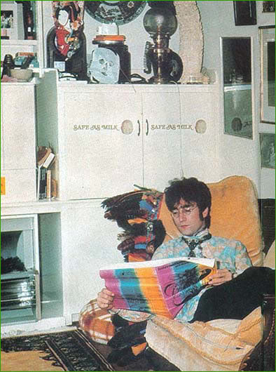 Both John and George were obviously fans of Save as Milk (1967) by Captain Beefheart and his Magic Band. How can we tell? They both had the free bumper sticker that came with the album displayed in their houses. In fact, John had two stickers in his home: