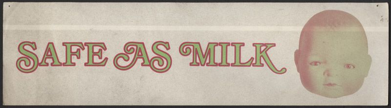 George at Kinfauns (above), John at Weybridge. The original release of Safe As Milk came with a free sticker, as pictured (thanks to Michael Stanowski).