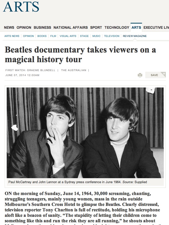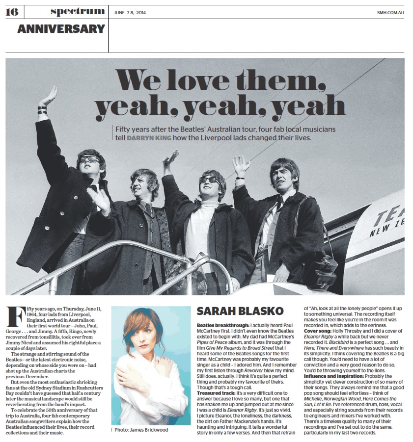 And this feature piece (which also appears in the Melbourne Age newspaper) about the continuing influence of the Beatles on some of the leading Australian musicians of today: