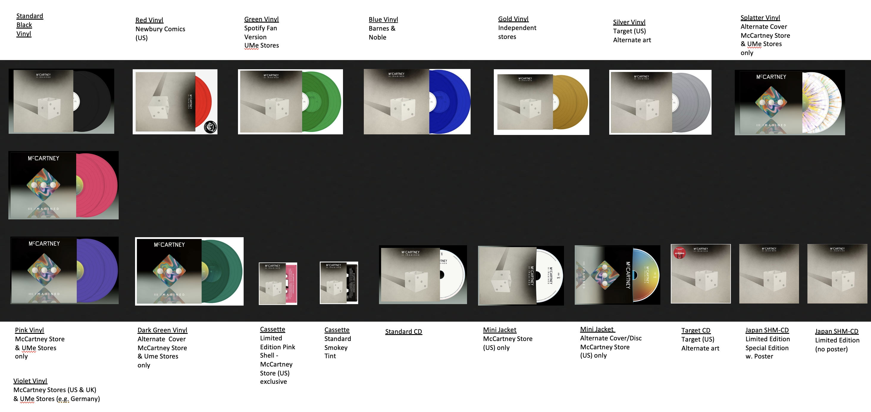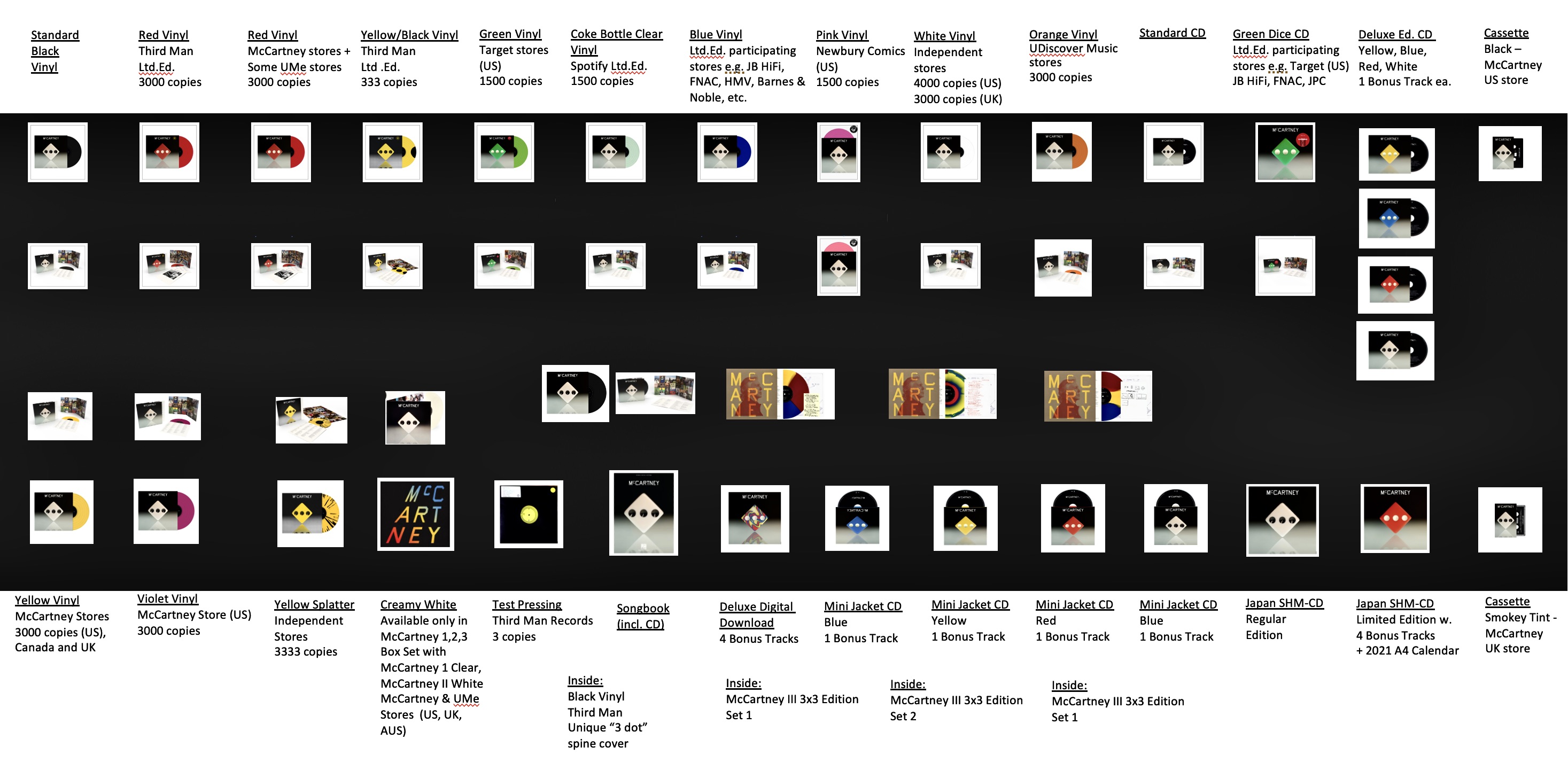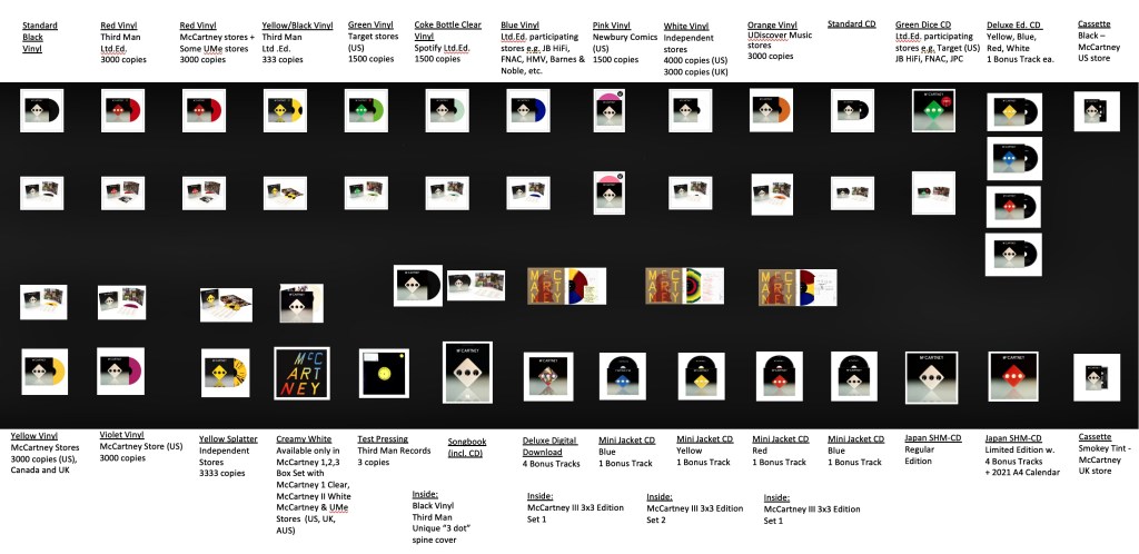 This is a photograph from the collection of one of our readers and contributors – Guy from the USA. Guy has managed to secure no less than 16 different McCartney III colour variants, and 10 different McCartney III Imagined double LPs.