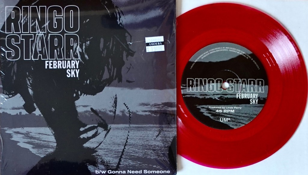 On that day, and only in person at the store, Amoeba made available an extremely limited edition 7″ single of one of the songs from the EP called ‘February Sky’. It’s been reported (but not confirmed) that only 500 of these singles were pressed. They come in a picture sleeve and are pressed on a cool red vinyl:
