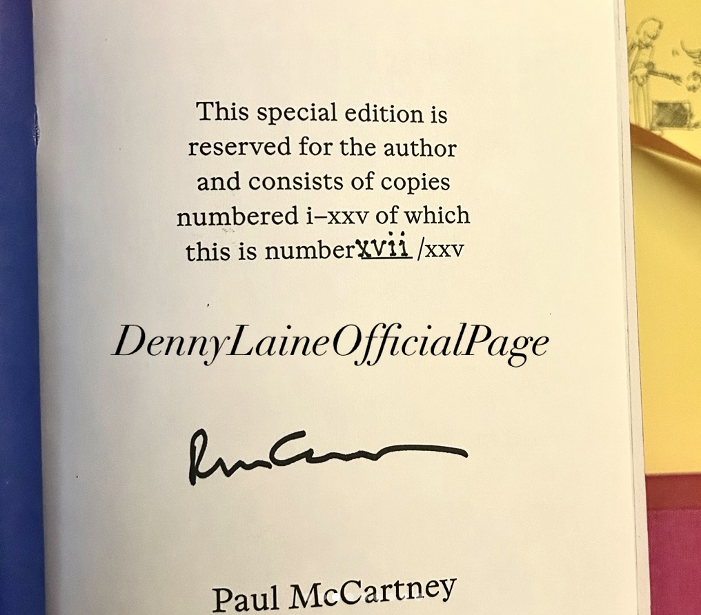 Denny Laine’s widow Elizabeth Hines has posted to Instagram images of an even more limited edition of the new book, Wings: The Story of a Band On The Run, signed and sent to her by Paul McCartney.