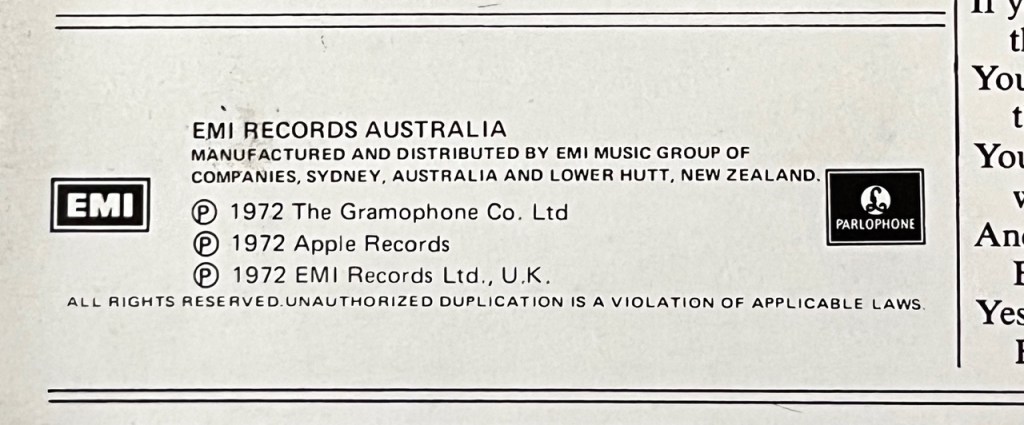 If you look closely you can see in the small print on the rear this EMI Records Australia credit included: