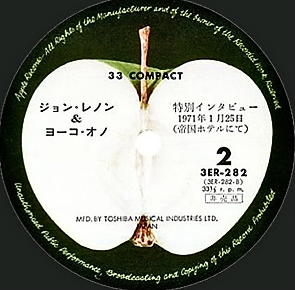 The two discs are John Lennon & Yoko Ono Special Interview (January 25, 1971, in Tokyo), and John Lennon & Yoko Ono Special Interview (September 2, 1971 in New York).