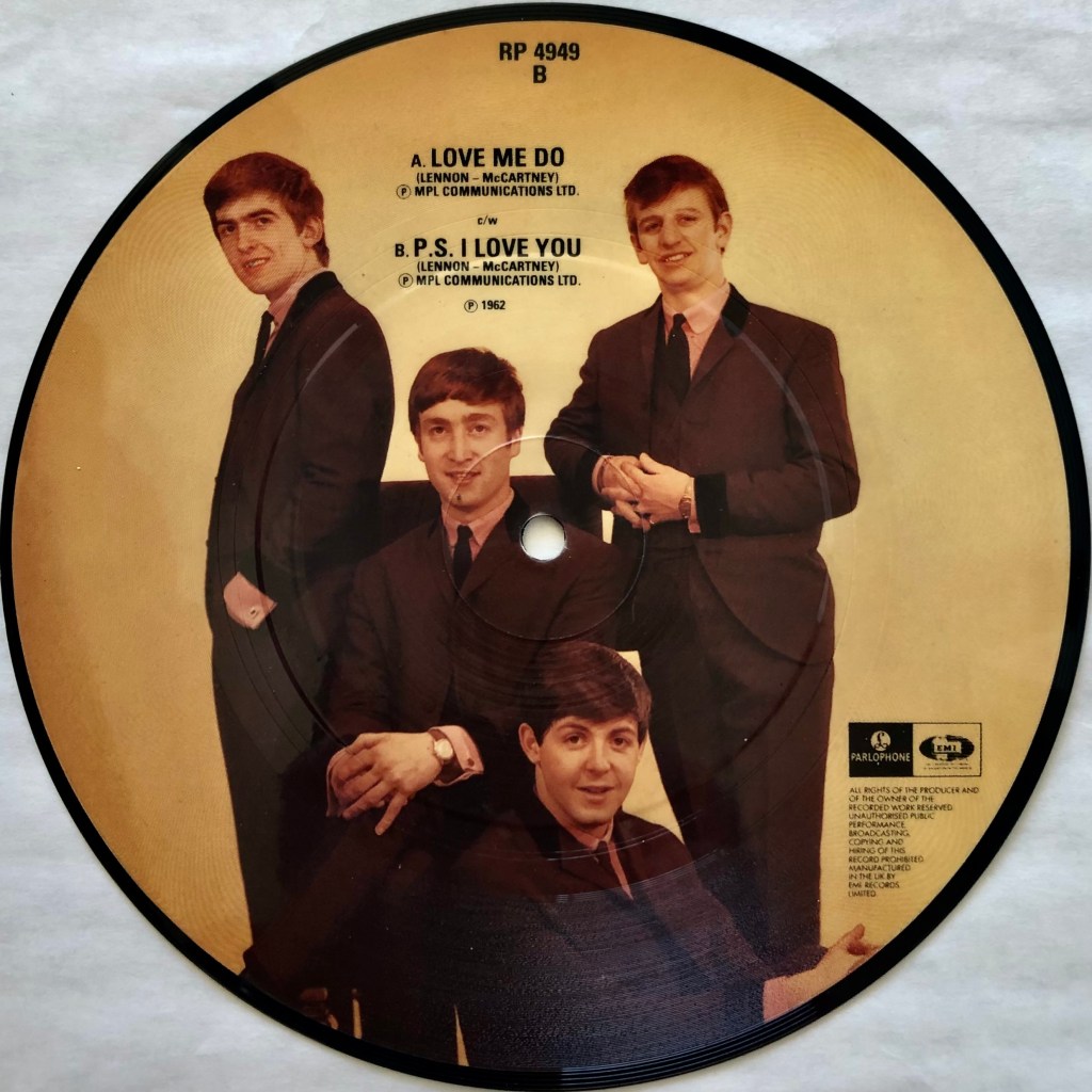 The final single in this set is a ‘Love Me Do’ picture disc, housed in its original clear plastic sleeve: