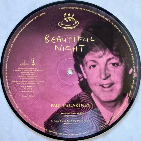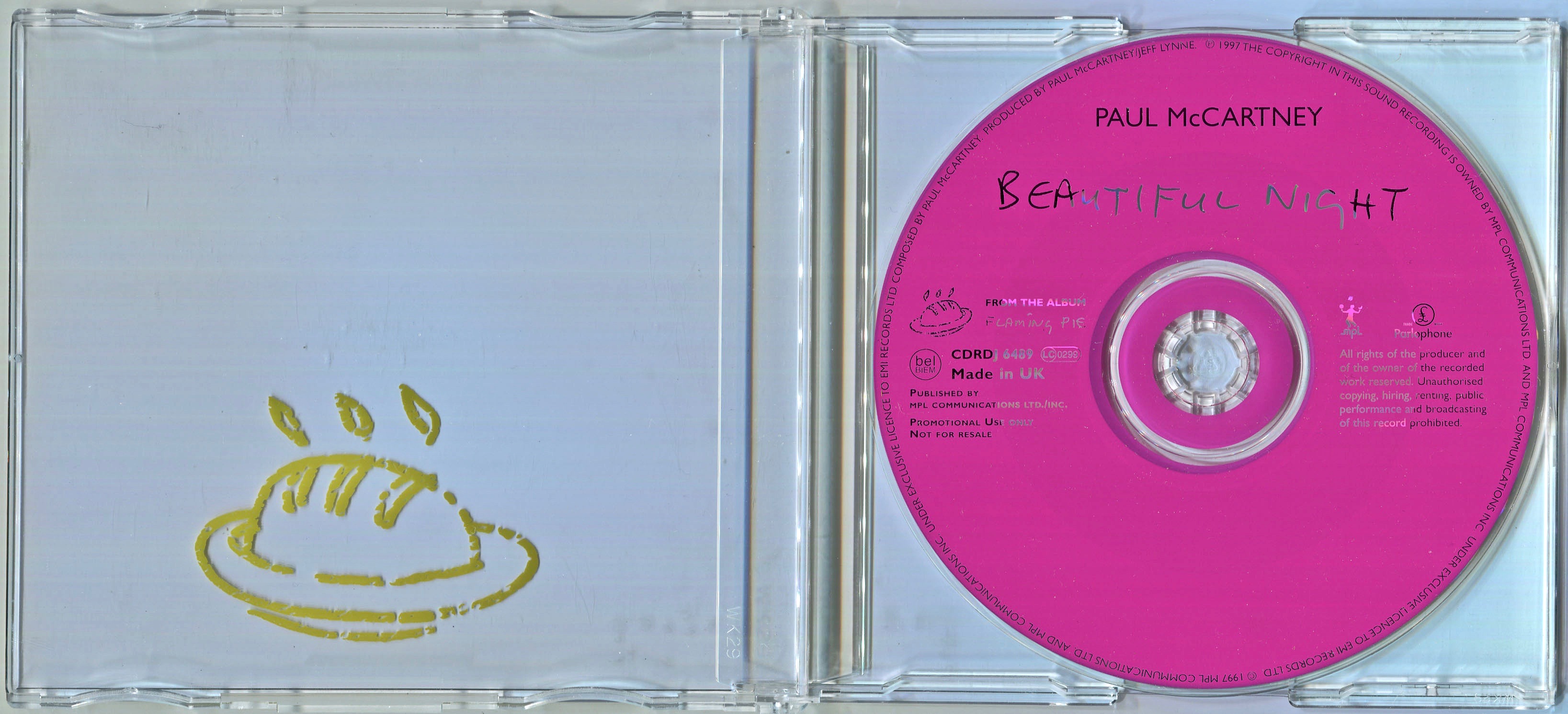 ‘Beautiful Night [1986]’ will be on the Deluxe Box Set and the Collector’s Edition of Flaming Pie, but it will be embedded in a longer track called ‘Oobu Joobu – Part 5’. (‘Oobu Joobu’ is a series of short radio-like shows made in 1997 to promote Flaming Pie. These were included on maxi CD’s that came out featuring singles from the record). All six episodes of ‘Oobu Joobu’ are included on the bigger box sets, but on the McCartney site you can now download all 6 minutes and 10 seconds of ‘Beautiful Night [1986]’ as a stand-alone track.