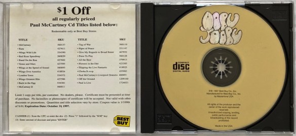 While we’re on the subject of ‘Oobu Joobu’, in the USA when you purchased Flaming Pie at a Best Buy store, you received a voucher for a bonus CD of further ‘Oobu Joobu’ content. The CD was limited to 3000 copies. It contains a cut down version of Episode 5 of the show called ‘Ecology’. It runs 41:55.