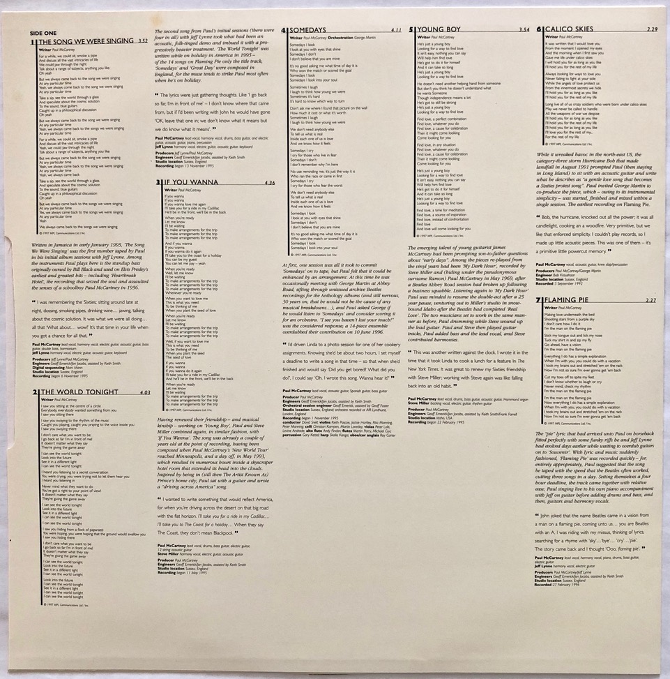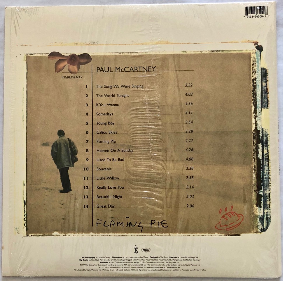 Flaming Pie was also issued on vinyl by Capitol in the USA. Ours is open but still in its shrink wrap with the hype sticker on the front: Because of the shrink we can’t show the US gatefold but here are the inner sleeves: