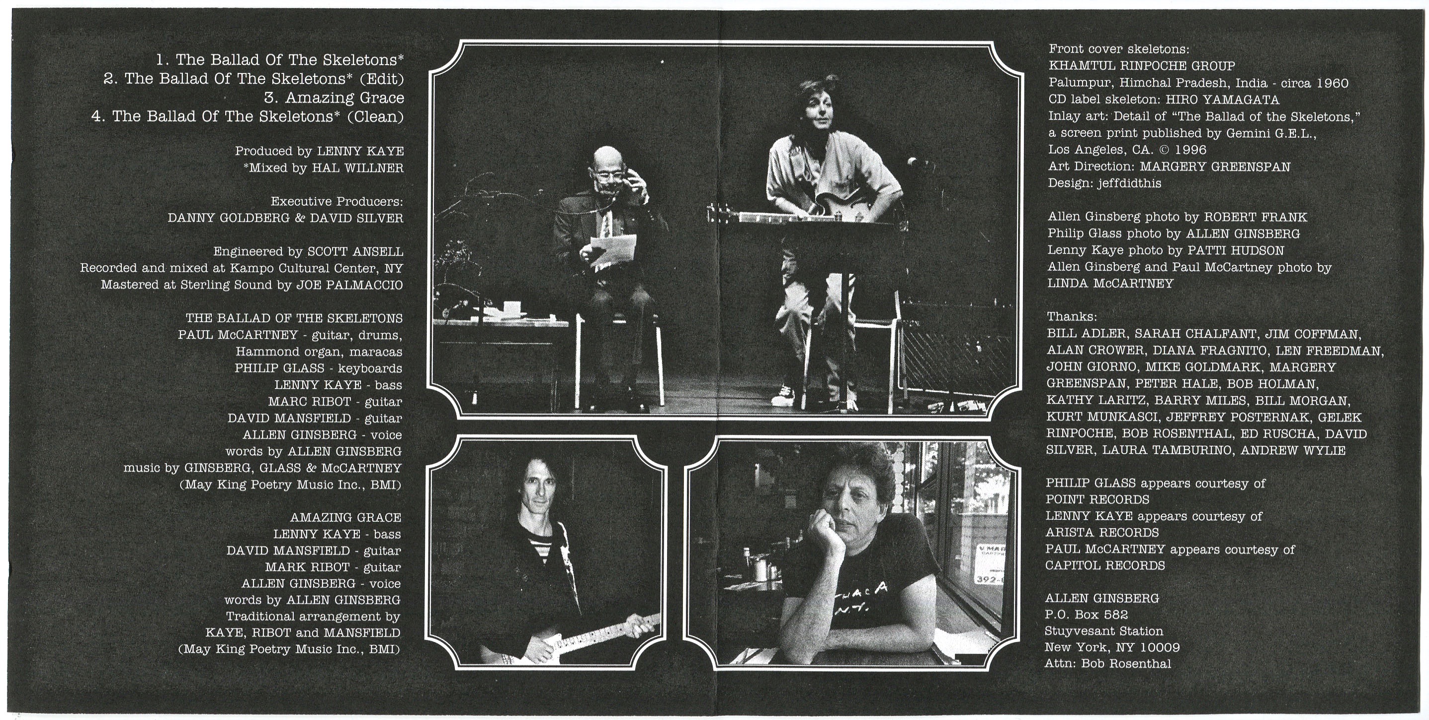Also included in the forthcoming re-issue box sets is McCartney’s 1996 collaboration with poet Allen Ginsberg called The Ballad of the Skeletons. This will be on the CD4-B-sides disc plus, in the US$600 Collectors Edition, it will be issued on vinyl for the first time as a 12” single with vinyl etching, and a poster.