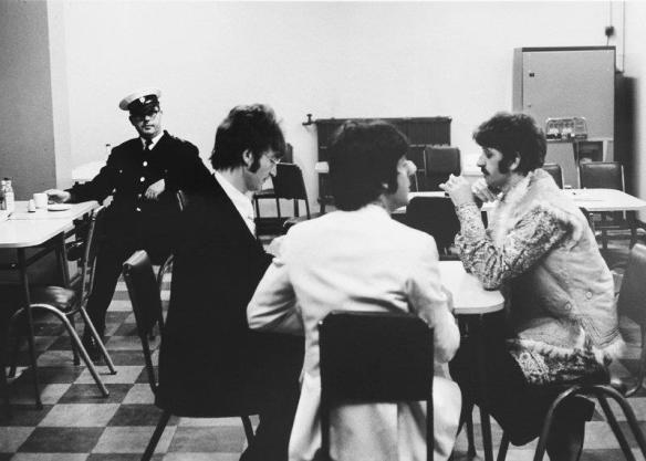 The Beatles in the EMI Canteen under the watchful eye of one of the EMI commissionaires, 1967. (Image courtesy of Proud Galleries © David Magnus)