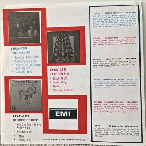 A tiny reference at the bottom says this flyer is “Designed & Printed by Times Litho Publicity Pte. Ltd.” A little Internet detective work reveals this to be a former Singapore-based printing company, active between the years 1965-2008. Discogs also lists the company as a printer of album covers in Singapore. So, I guess that’s proof that this is in fact a genuine Singapore pressing!