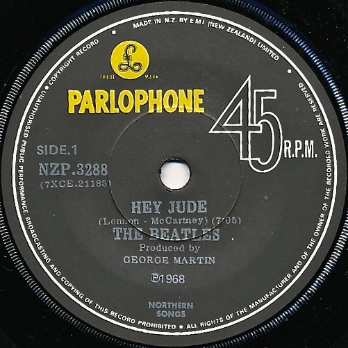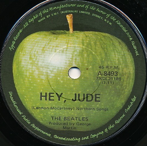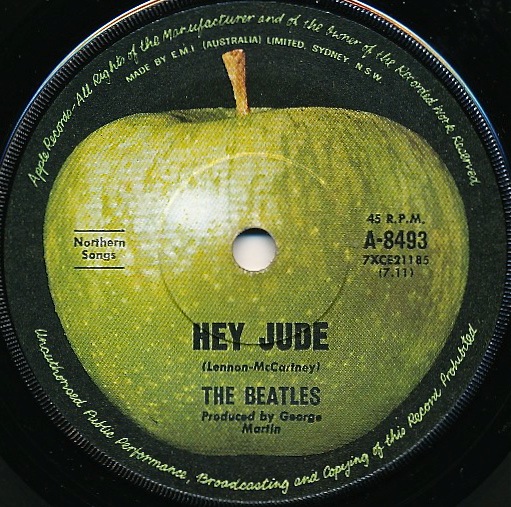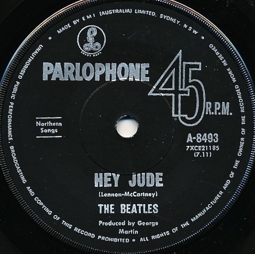 These are the other versions of the “Hey Jude” single in my collection. The record was released in that period just when Apple Records had first been created and so some copies in Australia also came out on the Beatles’ old label, Parlophone: