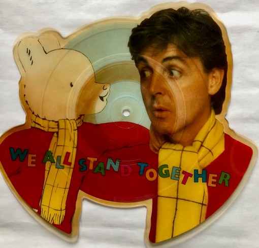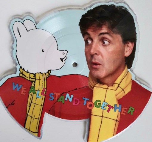 Having said all that, ‘We All Stand Together’ (a.k.a. ‘The Frog Song’) is really quite sweet and beautifully orchestrated and produced by George Martin. This limted edition 7″ single cut-out shaped picture disc will be a faithfull reproduction of the original shaped picture disc that came out in 1984. As then, it will accompany the re-release (in lovely 4K quality, and with a new audio mix) of the short animated film Rupert and the Frog Song that McCartney began work on in 1981 with animator Geoff Dunbar. In it Paul voices the character of Rupert.