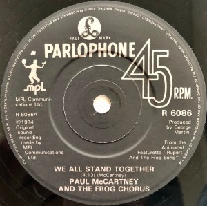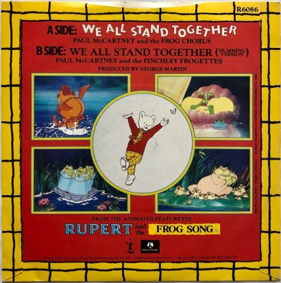 Now, we’re not against novelty items like this. Not at all. Nor are we against Paul McCartney’s dedicated support of the art of animation over the years. It’s great. But ‘We All Stand Together’ by Paul McCartney and the Frog Chorus is a very long way away from the Plastic Ono Band album, or George Harrison’s triple LP opus All Things Pass. I guess it’s a case of expectation meeting reality…..