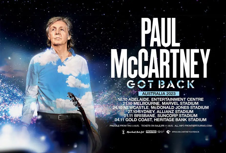 Paul McCartney and Frontier Touring have announced that the living legend is headed this way in October and November for a series of six concerts. For those of our readers who may not know Australia that well, one interesting thing about this announcement is that the tour takes in two regional centres that are not capital cities: Newcastle in the state of New South Wales, and the Gold Coast in Queensland.