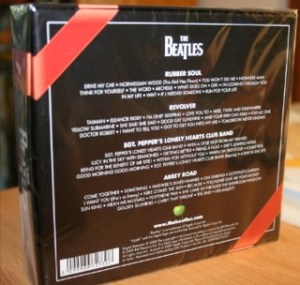 The rear cover of the jewel case details all the songs on the two albums. Notice the reference to the the special mini-documentaries. These were produced by Apple and accompany each album in the “Remastered” series as well: