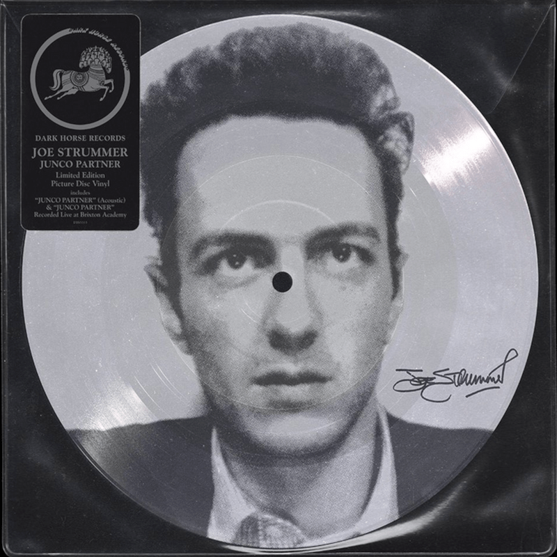 The first is from Dark Horse, the label owned and operated by the George Harrison estate. The Dark Horse Records revival continues with a Limited Edition 12″ picture disc single of Joe Strummer’s ‘Junco Partner (Acoustic)’/’Junco Partner (Live)’:
