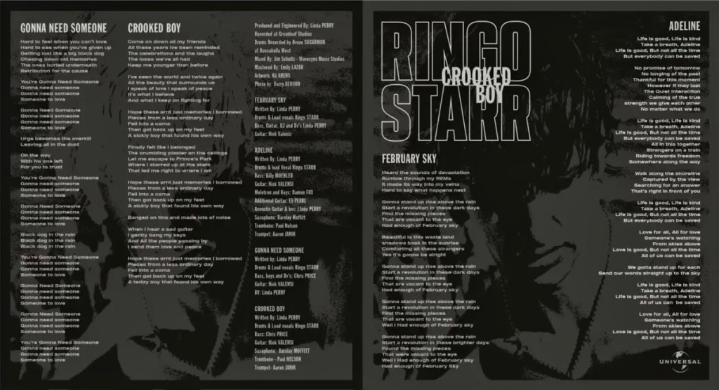Written and produced by Songwriter’s Hall Of Famer Linda Perry, Crooked Boy features four brand-new tracks from Ringo. The EP also includes guitar performances on every song from Nick Valensi of The Strokes.