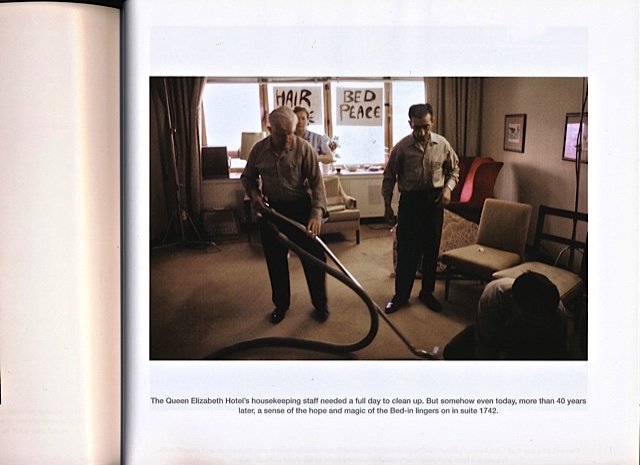 There really are some amazing photos and recollections from all sorts of people in this book. It is well worth the A$4.99 we paid for it!One page amongst many which caught our attention was the one below – taken at the very end of the eight days with hotel employees cleaning up the suite after the John and Yoko entourage had moved on:I really like this book. It captures an historic moment in time in a remarkable way.