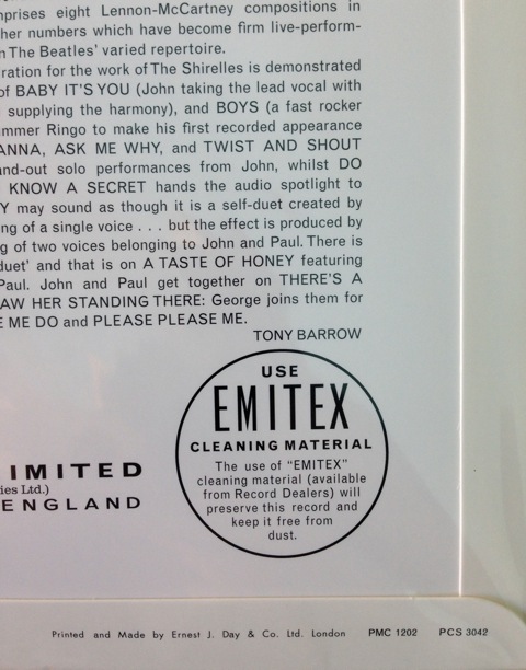 Here’s some of the detail in the printing and sleeve construction – all exactly faithful to the way this would have looked in 1963: