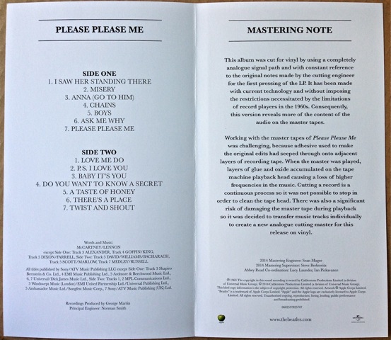 ‘Five years after the Beatles mono recordings were released on CD, Capitol Records and Universal Music are fostering the notion that to hear the Beatles music the way John, Paul, George and Ringo did in the 1960s, a mono LP is mandatory listening….The mono CDs, which were cleaned up and re-EQ’d in a way that did not occur with the new set of LPs, “was an attempt to give the history its day in the sun,” said project supervisor Guy Hayden. “There was no hurry and, in true Beatles fashion, if you can do it better, you do it again,” says Sean Magee, an Abbey Road-trained engineer who oversaw the mastering of the albums.’