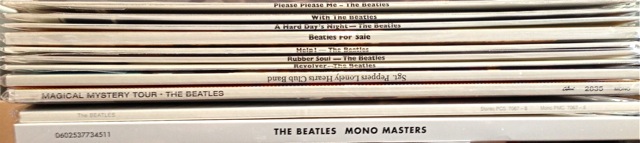 A reader has requested we publish some shots of the record spines. Here they are – and yes, that is the way that Sgt Pepper is printed. It looks upside down, but that’s also faithful to they way the original LPs were presented: