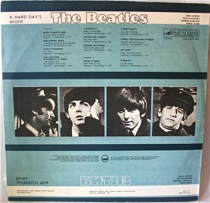 It got me thinking about other Russian releases I have in my own collection – apart from the McCartney “Choba B CCCP” ones. I had a bit of a look and found these (and I must say its very meagre compared to Vadim’s treasures). The first is “A Hard Days Night”. This is on EMI/Melodiya and comes in a single sleeve with a plastic inner. It has one less track than the British release. Its also stated that this is a “Direct Metal Mastered” pressing and it has a small official DMM logo on the rear cover: