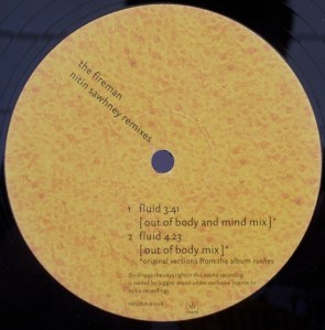 The remixes were done by British musician Nitin Sawhney and this 12 incher contains three of Sawhney’s remixes of the track “Fluid” plus one other song called “Bison”. All the original versions can be found on the “Rushes” CD and LP.